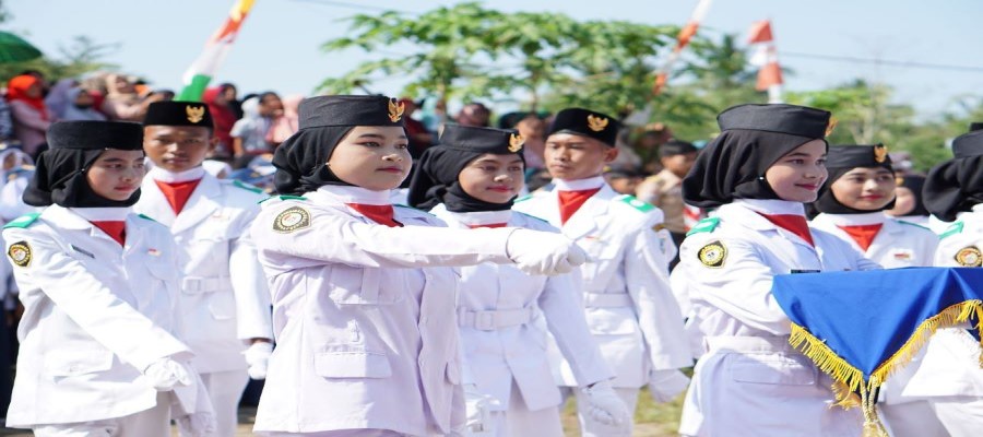 Paskibra smk nur insani angsana dalam pelaksanaan pengibran merah putih di HUT RI ke 78 di Kecamatan Angsana